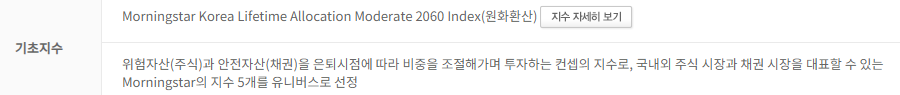 | 기초지수 | Morningstar Korea Lifetime Allocation Moderate 2060 Index (Gross Return) |