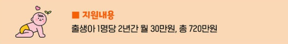 - 지원 금액: 자녀 1인당 월 30만 원, 최대 2년간 총 720만 원