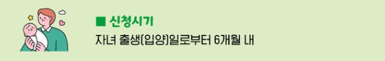 - 신청 시기: 출생일 또는 입양일로부터 6개월 이내