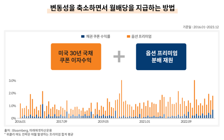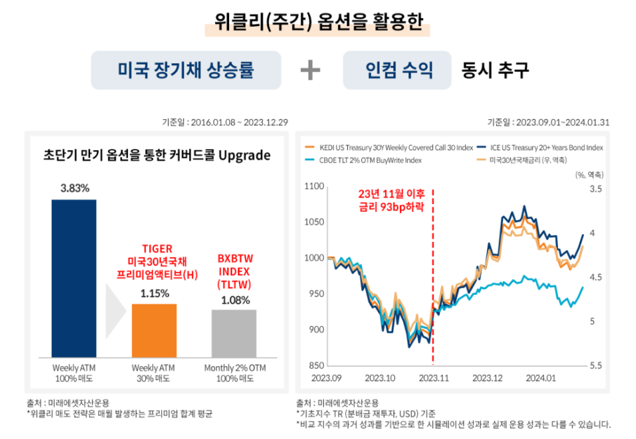 이 같은 전략을 통해 장기 국채 투자에 따른 이자수익과 자본차익에 더해, 콜옵션 프리미엄 확보를 통한 추가 인컴수익 향유를 기대할 수 있습니다.