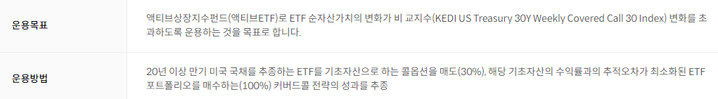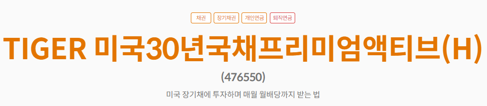 | 상품명 | TIGER 미국30년국채프리미엄액티브(H) |